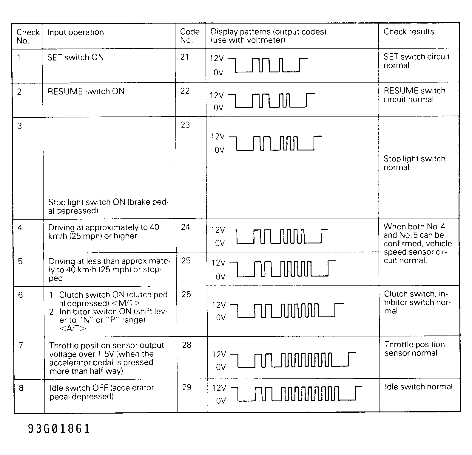 . Read codes. Turn main cruise control switch to OFF position.