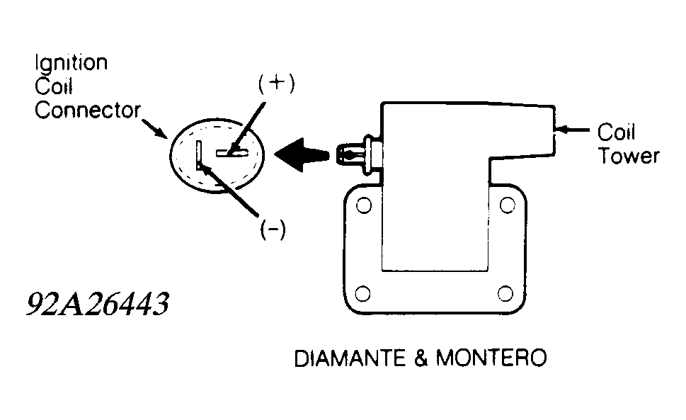 Using a DVOM, measure primary coil resistance between positive and negative terminals of coil. See Fig 1 -4. Measure secondary coil resistance between coil positive terminal and ignition coil tower. Primary and secondary coil resistance should be within specification. See IGNITION COIL RESISTANCE table.