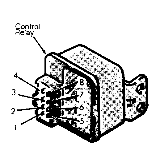 - Connect positive lead of 12-volt source to terminal No. 8 and negative lead to terminal No. 2. If there is continuity between terminals No. 1 and 4, go to next step. If there is no continuity, replace relay.