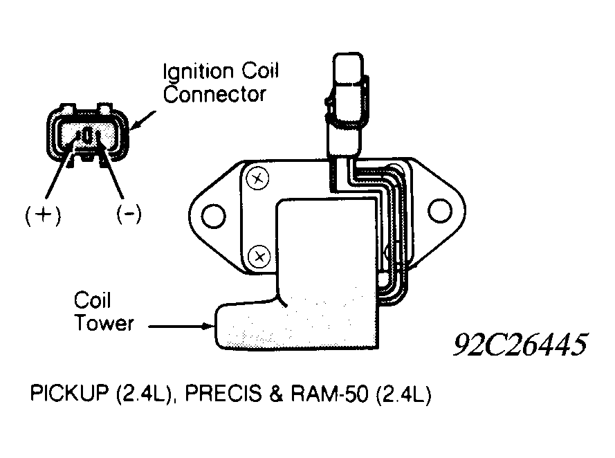 Using a DVOM, measure primary coil resistance between positive and negative terminals of coil. See Fig 1 . Measure secondary coil resistance between coil positive terminal and ignition coil tower. Primary and secondary coil resistance should be within specification. See IGNITION COIL RESISTANCE table.