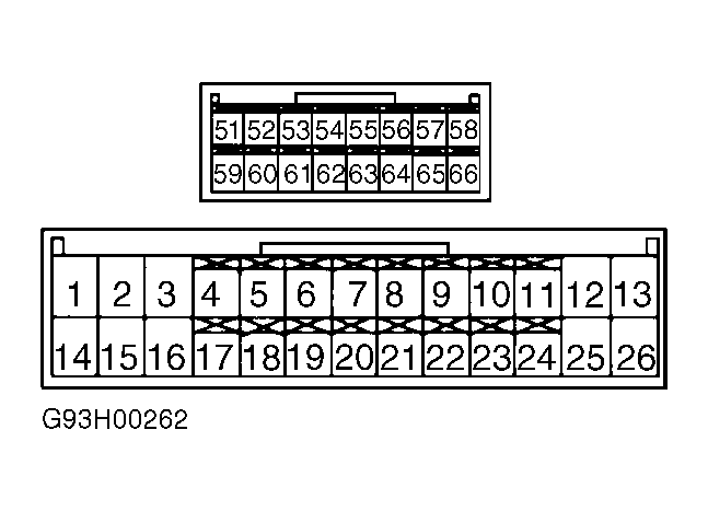 - Using ohmmeter, check continuity between TCL module harness connector terminal No. 60 and ABS ECU harness connector terminal No. 51. See Figure and Fig 1 .