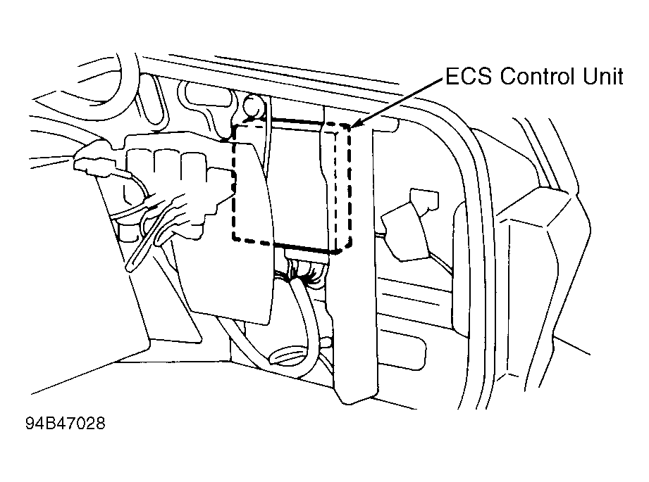 - Ensure ignition is off. Disconnect Electronically Controlled Suspension (ECS) control unit (if equipped). See Fig 1