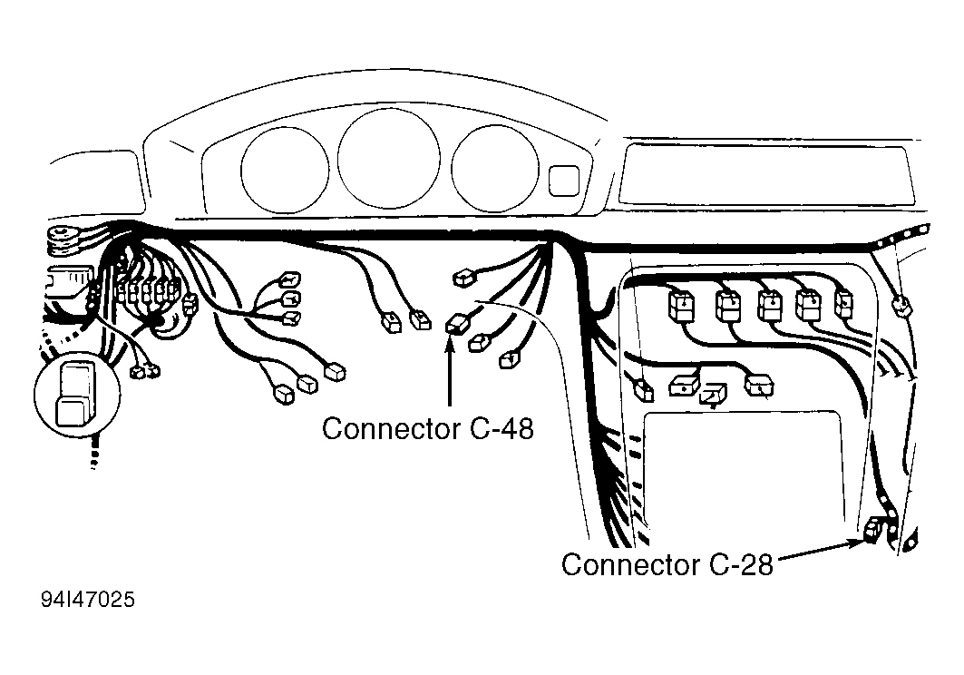 - If voltage measured in each circuit is 4-5 volts, backprobe connector C-48 (18-pin) at lower end of steering column. See Figure