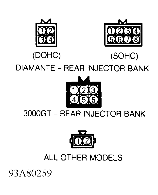 Home >> Mitsubishi >> 1993 >> Eclipse Base, Standard >> Repair and Diagnosis (Single Page) >> Engine Performance >> System >> Engine Controls - Tests W/Codes >> Terminal Identification