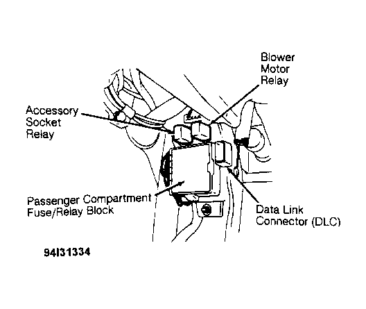 Passenger Compartment Fuse/Relay Block Behind left side of dash. See Figure .