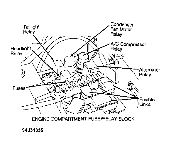 Engine Compartment Fuse/Relay Block On left inner fender panel, behind battery. See Figure .