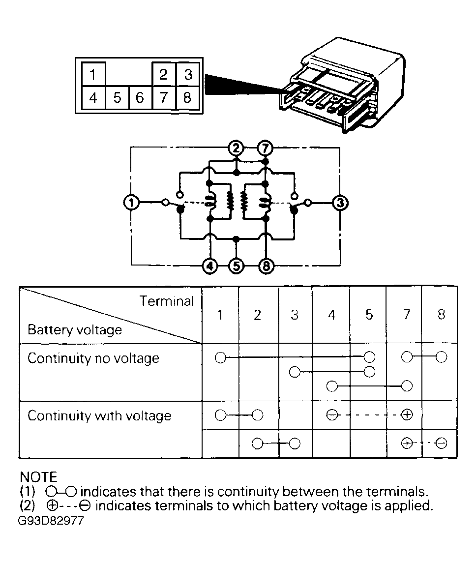 Check continuity of relay using following chart. See Fig 1 . Replace relay as needed.