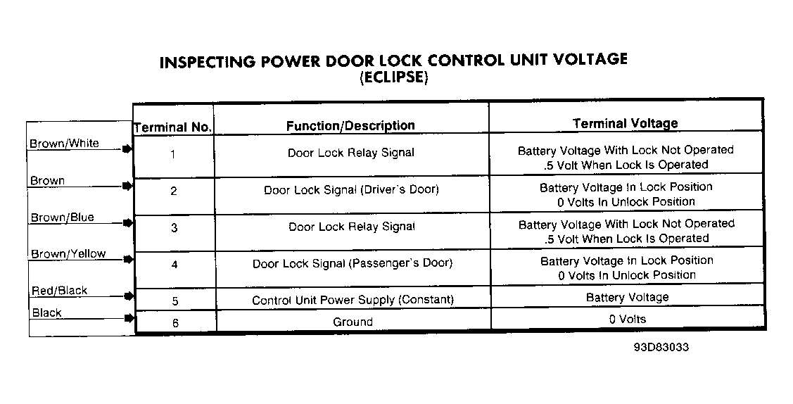 Home >> Mitsubishi >> 1994 >> Eclipse Base, Automatic >> Repair and Diagnosis (Single Page) >> Body & Frame >> Door Locks - Power & Keyless Entry System >> Component Testing >> Power Door Lock Control Unit (Eclipse)