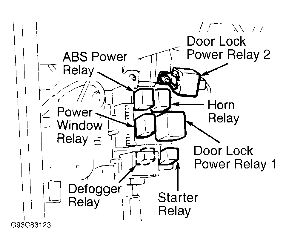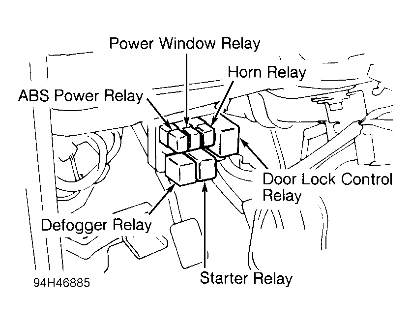 - Remove power window relay from fuse/relay block, located in engine compartment. See Figure and Figure . Check continuity between power window relay terminals No. 2 and No. 4. Continuity should be present.