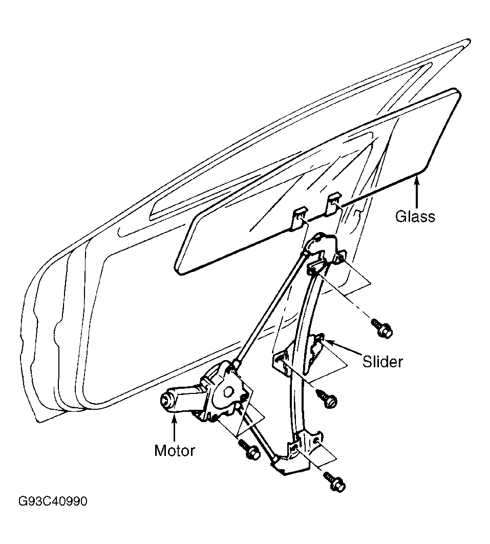 Remove control switch from trim panel. Using ohmmeter, check continuity of switch. See the MASTER WINDOW SWITCH CONTINUITY CHART  or the PASSENGER SIDE WINDOW SWITCH CONTINUITY CHART  . Also, seeFigure . Replace appropriate switch as necessary if switch continuity is not as specified.