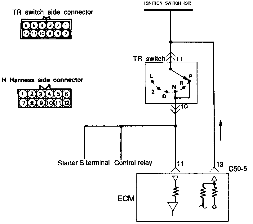 1. Measure the power supply voltage of the Park Neutral Position Switch.