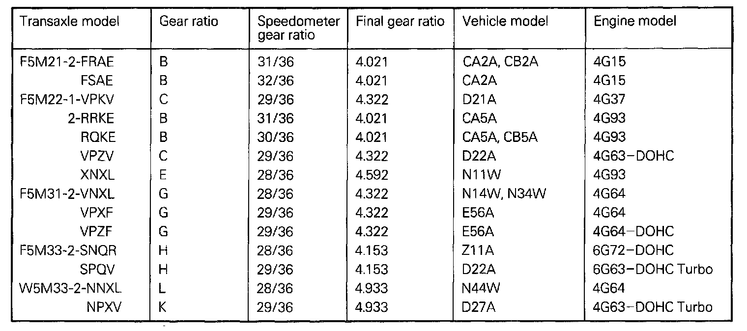Transaxle Model Table