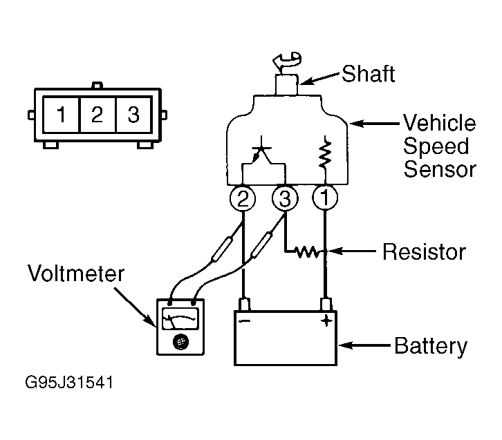 - VSS is located at end of speedometer cable at transmission. Connect battery, resistor (3-10 ohms) and voltmeter to indicated terminals. See Fig 2 . Ensure voltage pulses 4 times per speedometer shaft revolution. If voltage is not as specified, replace VSS. If voltage is as specified, go to step 5).