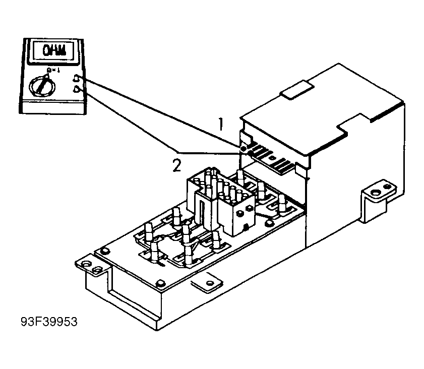 - If resistance is less than 5 ohms, disconnect traveler module. Traveler module is located behind right side of dash, below glove box. Check resistance between traveler module terminals No. 1 and 2. See Figure .