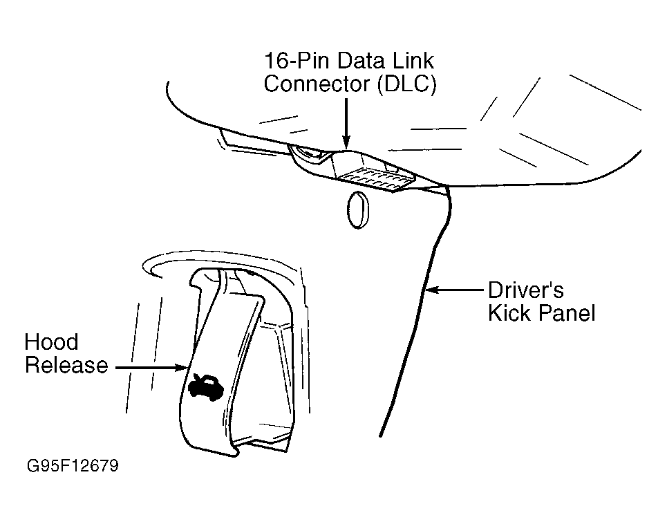Body Control Module Diagnostic Trouble Codes (DTCs) are accessed through CCD bus Data Link Connector (DLC) using Chrysler's Diagnostic Readout Box (DRB) scan tool or generic scan tool. DLC is a 16-pin connector located on left side kick panel just above hood release. See Fig 1 .