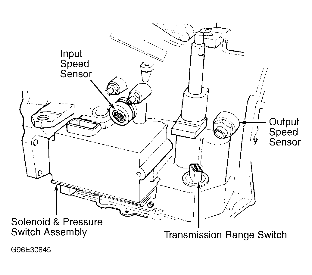 Input speed sensor uses a magnetic pick-up coil to generate an AC voltage input signal when trigger teeth on input clutch assembly pass magnetic pick-up coil. The TCM uses input signal to determine input shaft speed. See Figure.