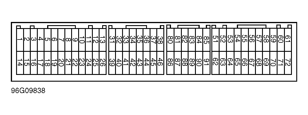 1. Turn ignition off. Using an ohmmeter, check continuity between chassis ground and PCM ground terminal(s). See Figure . Ohmmeter should indicate zero ohms. If reading is not as specified, check and repair open circuit between PCM connector and chassis ground. If reading is as specified, go to next step.