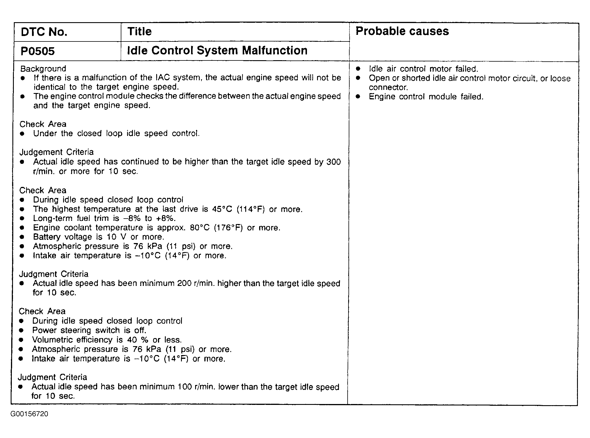 Fig 1: P0505: Idle Control System Malfunction (Diagnostic Detection Logic)