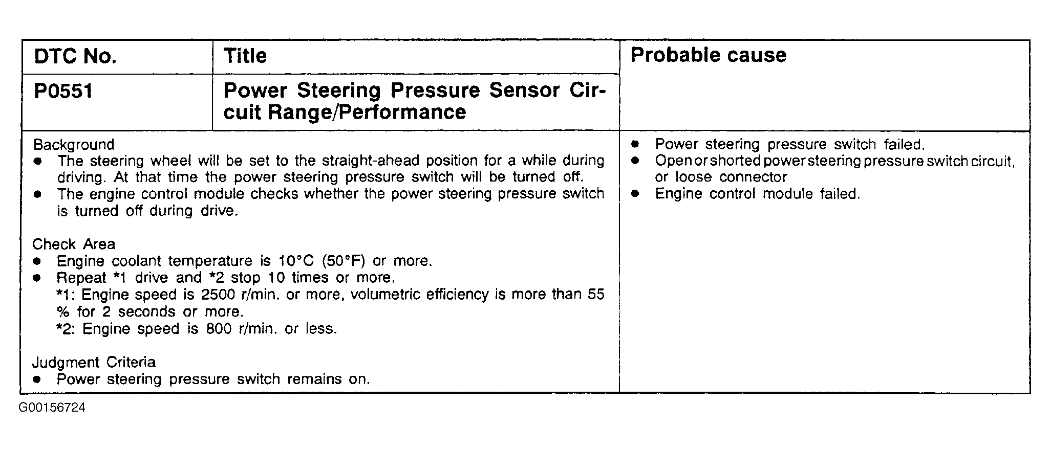 DTC P0551: Power Steering Pressure (PSP) Sensor Circuit Performance