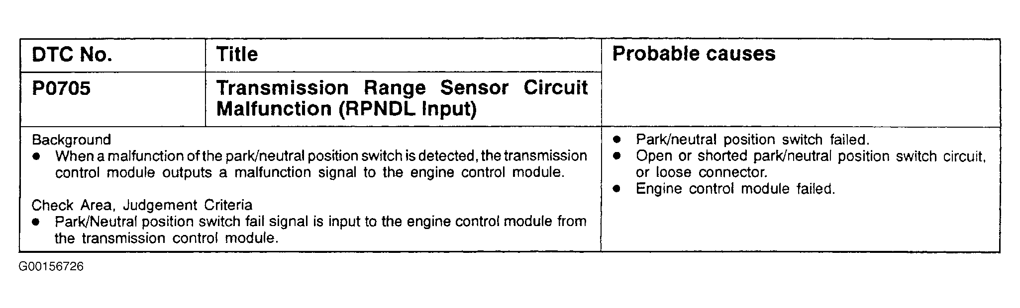 DTC P0705: Transmission Range Sensor Circuit Failure