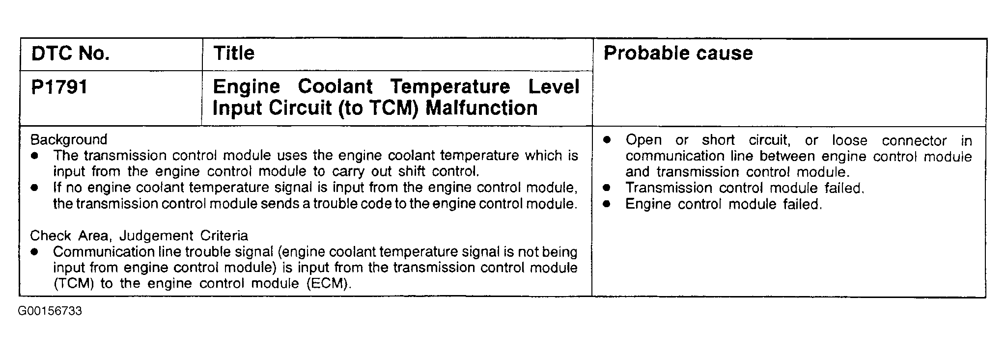 DTC P1791: Engine Coolant Temperature Level Input To TCM