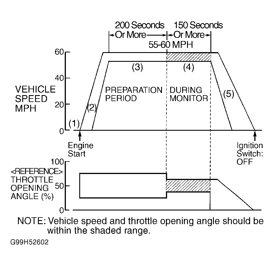 3. Travel for 200 seconds or more while keeping speed at 55-60 MPH (M/T: 5th gear).