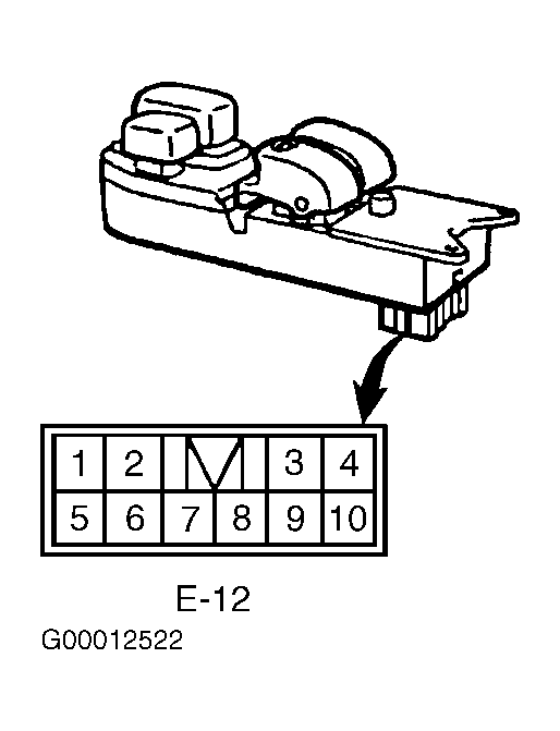 Remove power window main switch from trim panel. Apply battery positive voltage to switch terminal No. 13. Apply ground to switch terminal No. 12. See Figure . Continuity should be present at specified terminals. See POWER WINDOW MAIN SWITCH CONTINUITY  table. If continuity is not as specified, replace power window main switch.