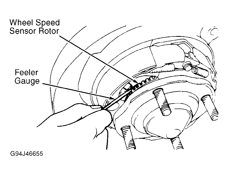 Fig 1: Checking Wheel Speed Sensor-To-Rotor Gap (Typical - Front Wheel)