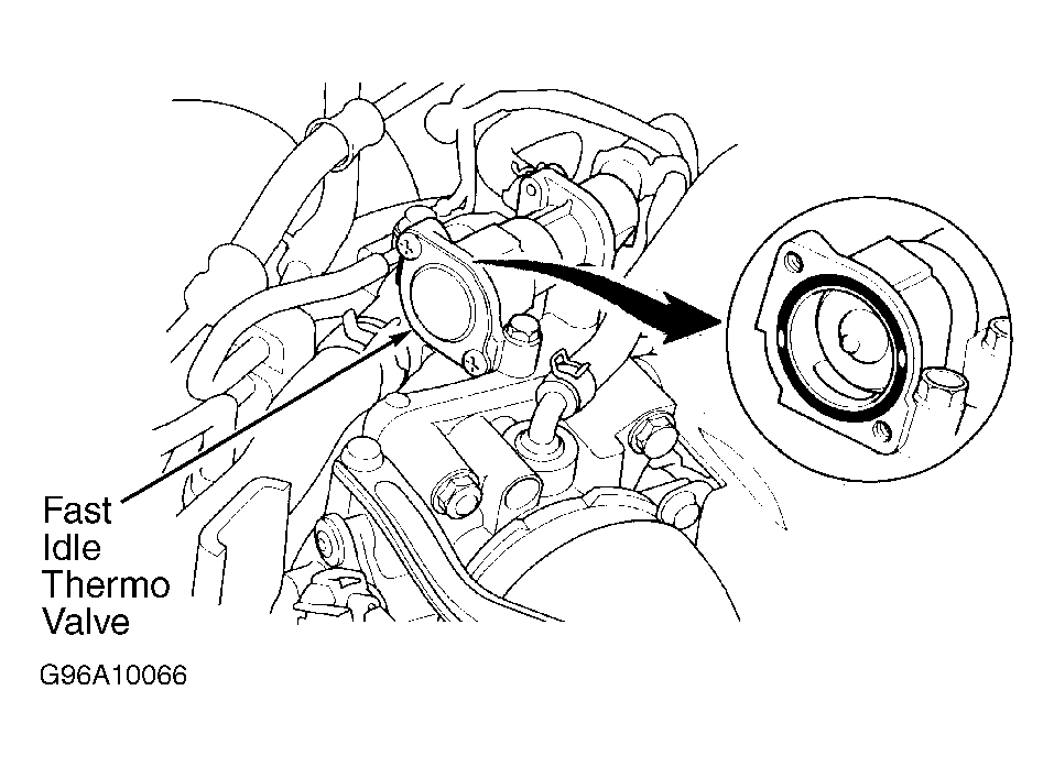 - Start engine and run at 3000 RPM, with no loads and transmission in Park or Neutral, until radiator fan comes on. Allow engine to idle. Fast idle thermo valve should be completely closed. Place finger on valve seat area. If vacuum is felt, fast idle thermo valve is leaking. Ensure engine coolant level is correct and cooling system is free of air. If okay, replace fast idle thermo valve and recheck for symptom.