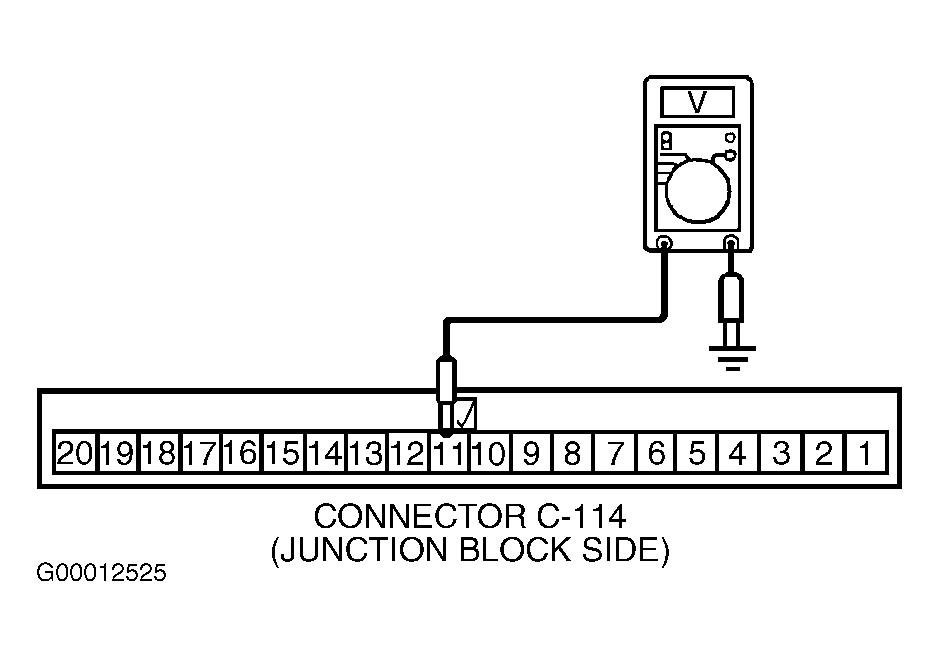 . If voltage is about 12 volts, replace ETACS-ECU. If voltage is not about 12 volts, check ETACS-ECU connector C-114 for damage, and repair as necessary. If ETACS-ECU connector C-114 is in good condition, check wiring between ETACS-ECU connector C-114 and ignition switch connector C-101.