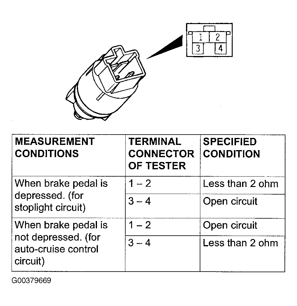- Check for continuity between the terminals of the switch. See Fig 1.