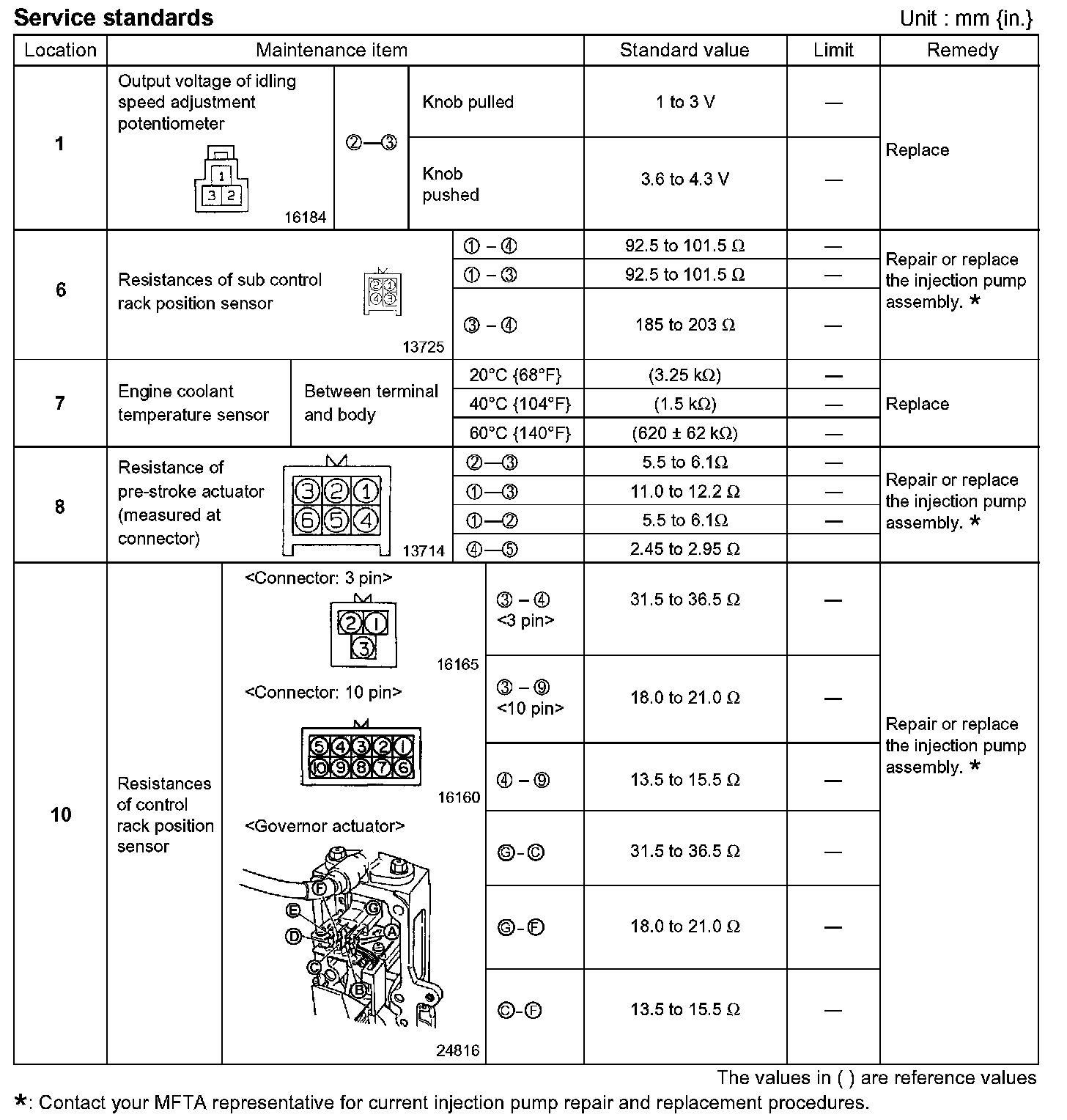 Home >> Mitsubishi >> 2000 >> FG639 L4-3.9L DSL Turbo >> Repair and Diagnosis >> Powertrain Management >> Computers and Control Systems >> Diesel Injection Pump Control Rod Position Sensor >> Testing and Inspection