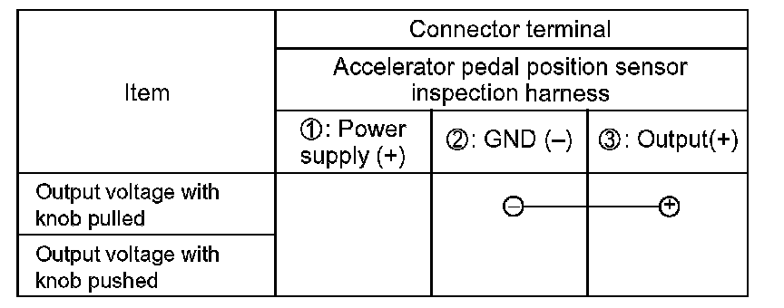 - Check the output voltages of the idling speed adjustment potentiometer 1 in accordance with the following table.