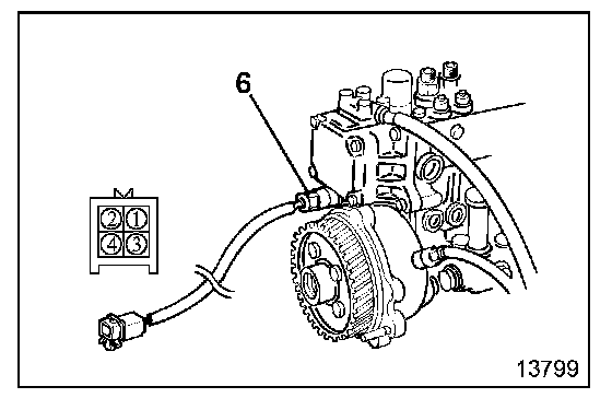 - If the measured value deviates from the standard value, replace engine speed sensor 13.