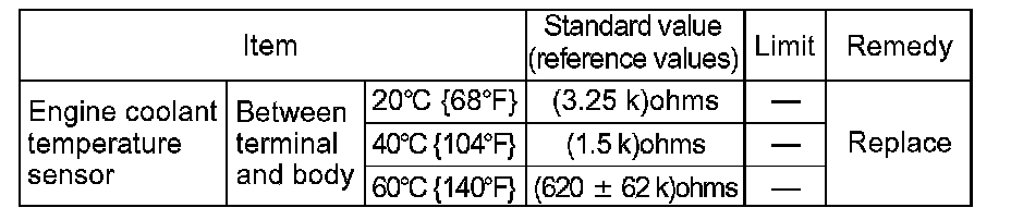 - If the measurements are out of specification, replace the engine water temperature sensor.