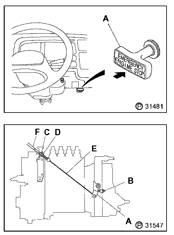 - Inner wire E of stop cable F should be taut. If not, make adjustment.