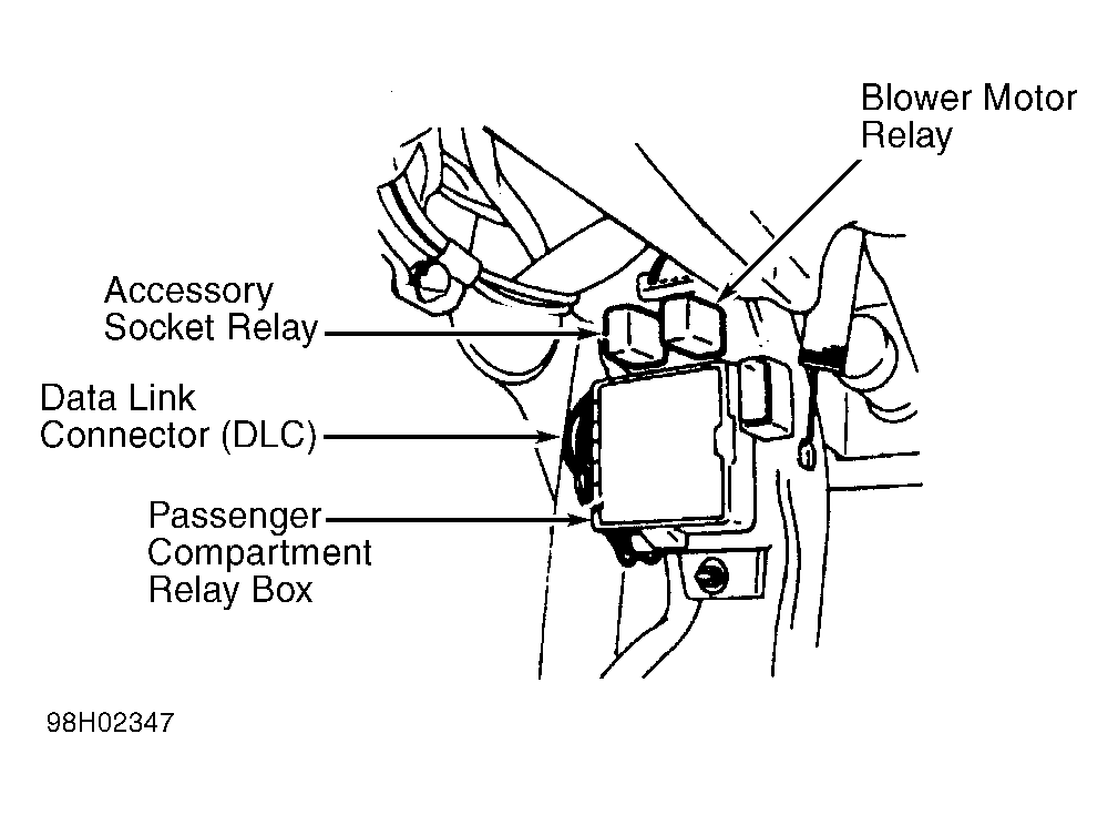 | Passenger Compartment Relay Box | Behind left side of dash. See Figure . |