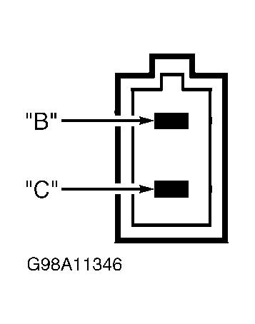 1. Check brakelight operation. If brakelights operate properly, go to step  3. If brakelights stay on continuously, check for continuity between brakelight switch terminals "B" and "C". See Fig 1 or Fig 2 . Repair or replace switch as necessary. If brakelights do not come on when brake pedal is depressed, check fuse located in underhood fuse/relay box. See FUSE IDENTIFICATION  table.