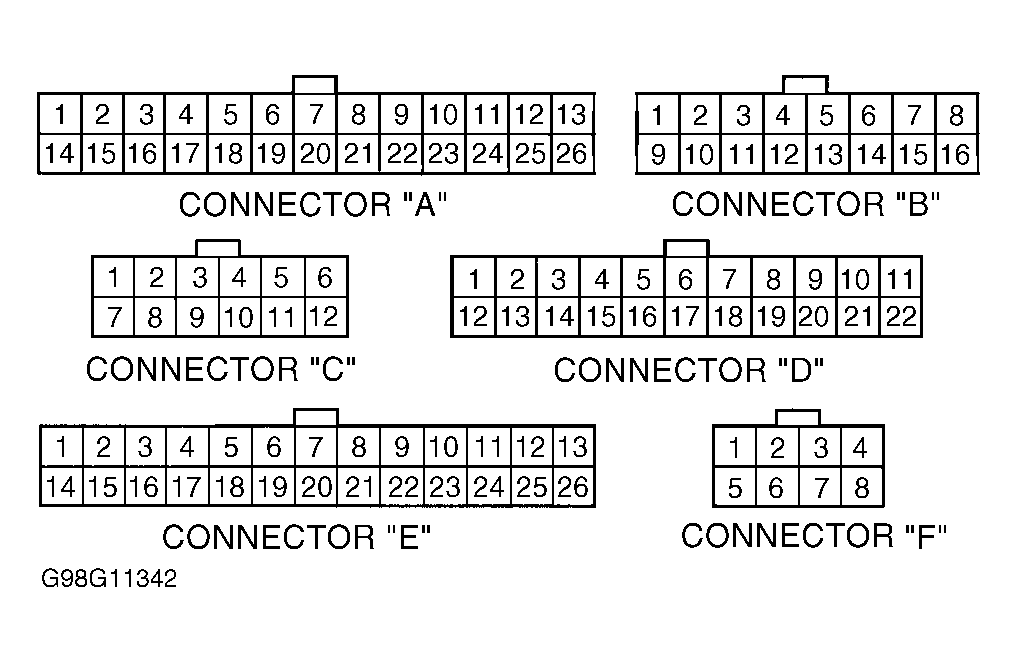 Measure voltage by backprobing between PCM 26-pin connector "A" terminal No. 26 (Brown/Black wire) and PCM 12-pin connector "C" terminal No. 6 (Blue/Red wire) with ignition switch in START position. See Figure. If battery voltage is present, starter signal is okay. If battery voltage is not present, inspect STARTER SIGNAL fuse No. 14 (7.5-amp) in underdash fuse block. If fuse is okay, repair open circuit in Blue/Red wire between PCM 12-pin connector "C" and fuse No. 14. If fuse is blown, repair short circuit in Blue/Red wire between PCM 12-pin connector "C" and fuse No. 14 or PGM-FI main relay. Replace fuse.