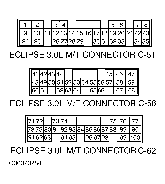 9. Check ECM connectors C-58 and C-62 or PCM connectors C-55 and C-59 for loose, damaged or corroded terminals. If problem exists, repair connector(s), then go to step  11 . If problem does not exist, go to next step.