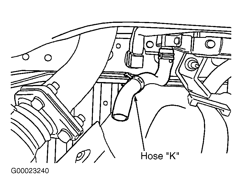- Disconnect hose "J" at liquid separator end and connect hand vacuum pump to hose "J". See Figure . Disconnect and plug hose "K" at fuel tank end. See Figure . Apply vacuum. If vacuum leaks, go to step 18 . If vacuum does not leak, go to next step.