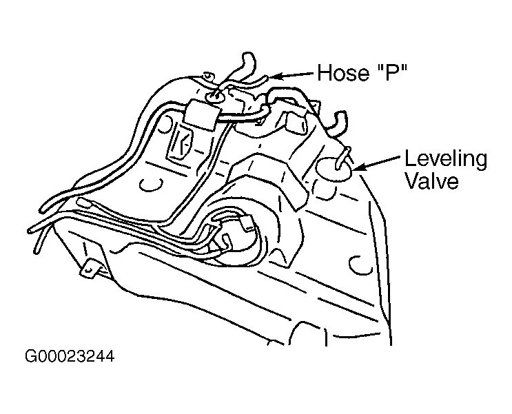 - Remove fuel tank. Using hand vacuum pump, check hose "P" for leaks. See Figure . If problem exists, replace hose "P", install fuel tank and fuel filler neck, then go to step 31 . If problem does not exist, go to next step.