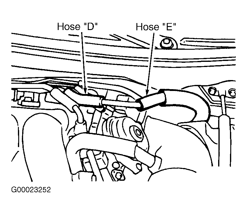 - Using hand vacuum pump, check for leaks in hoses "C" through "E". See Figure and Figure . If leak exists, replace appropriate hose, then go to step 31 . If leak does not exist, go to next step.