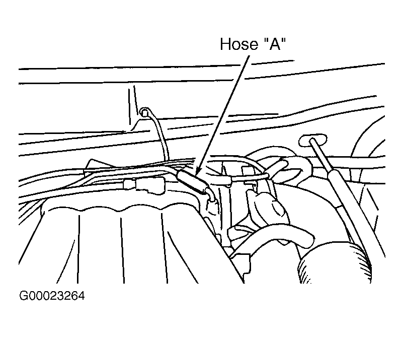 - Disconnect hose "A" at intake manifold end. See Fig 1 . Connect hand vacuum pump to hose "A". Apply 12 in. Hg (40 kPa) or less of vacuum. If vacuum holds, go to step 3 . If vacuum leaks, go to next step.