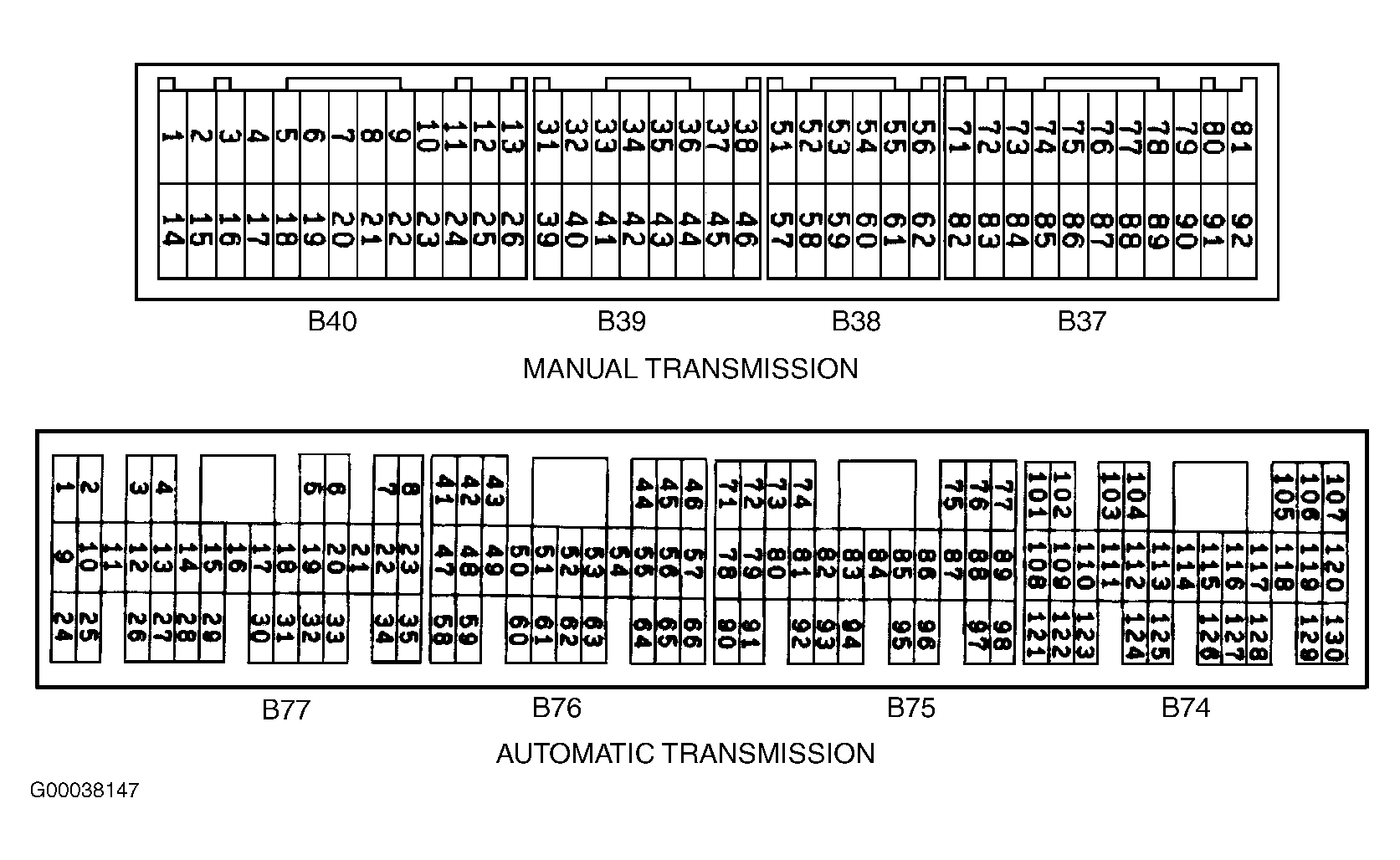 The following terminal illustrations are shown as viewed from component side of connector.