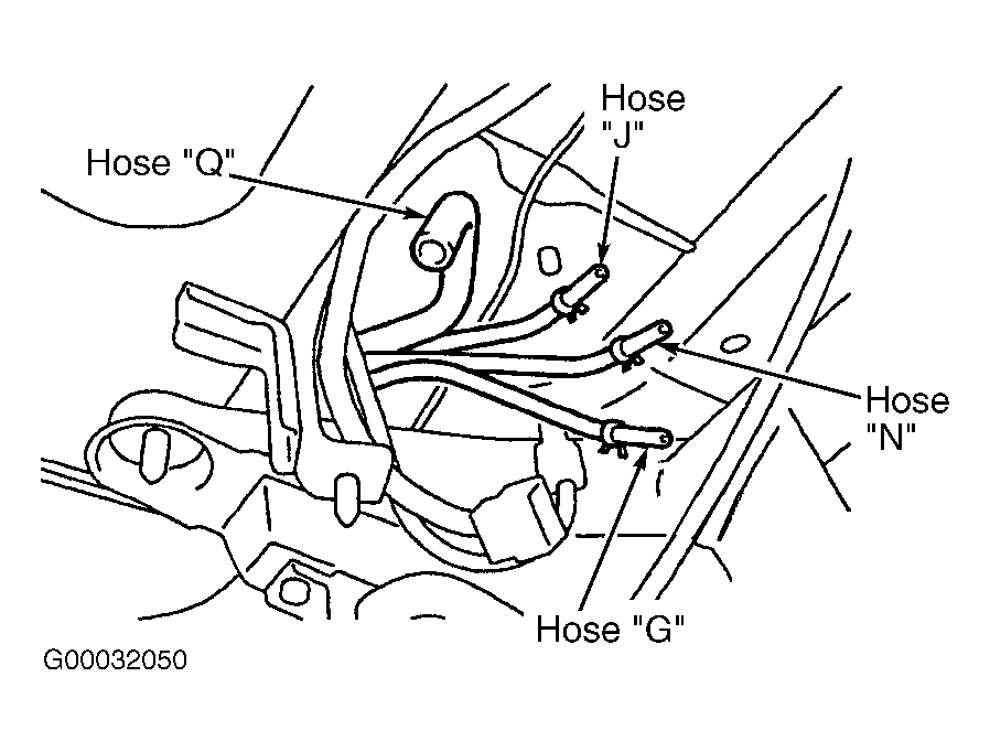 - Remove fuel tank. Using hand vacuum pump, check for leaks in hoses "J", "Q", "N", and "T". See Figure and Figure . If leak is indicated, replace appropriate hose, install fuel tank, then go to step 26. If leak is not indicated, go to next step.