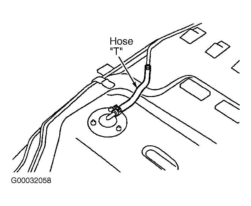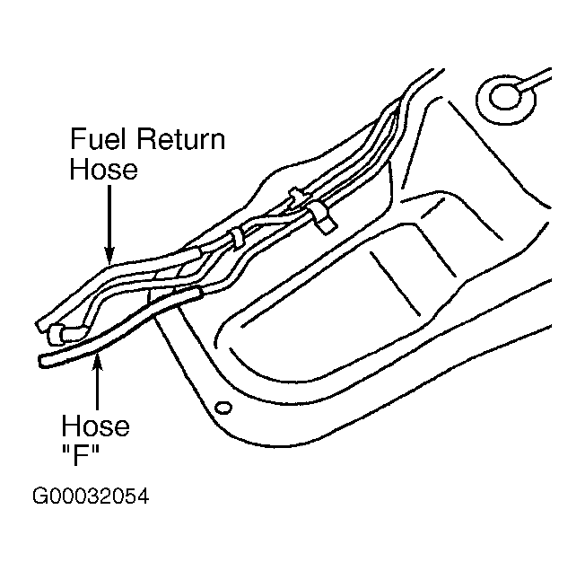 - Remove fuel tank. Using hand vacuum pump, check hoses "F" and "G" for clogging. See Figure and Figure . If clogging exists, replace appropriate hose, install fuel tank and fuel filler neck assembly, then go to step 28. If clogging does not exist, install fuel tank and fuel filler neck assembly, then go to next step.