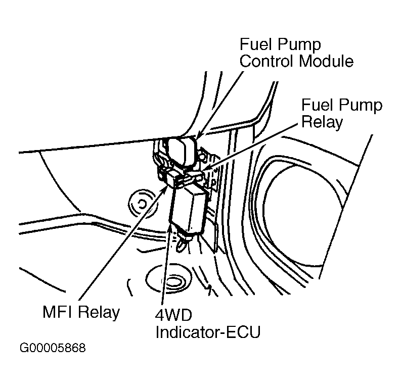 Fig 9: Locating Fuel Pump & Multiport Fuel Injection Relays (Montero Sport)