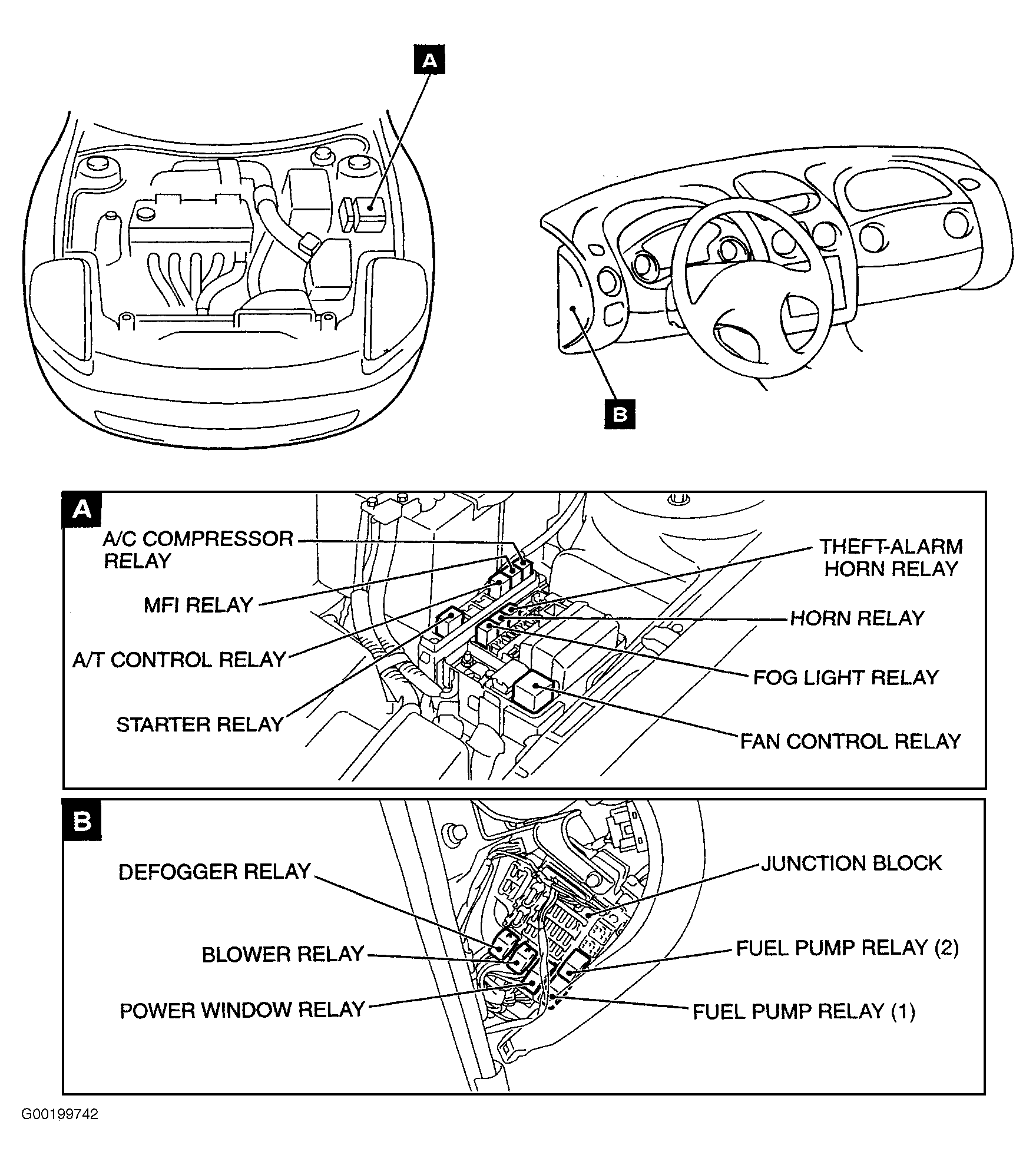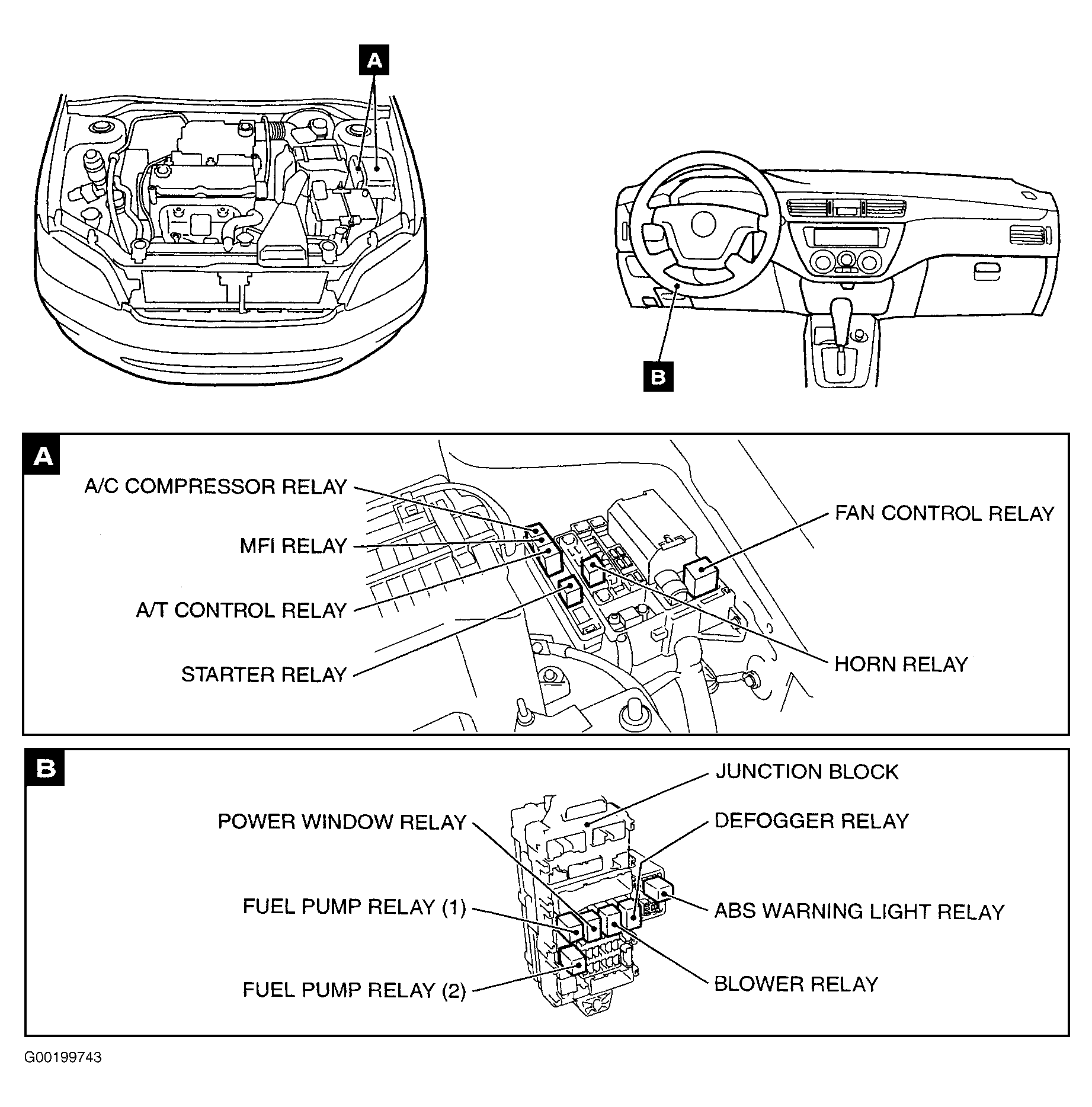 Fig 3: Identifying Multiport Fuel Injection Relay Location (Eclipse, Eclipse Spyder & Galant)