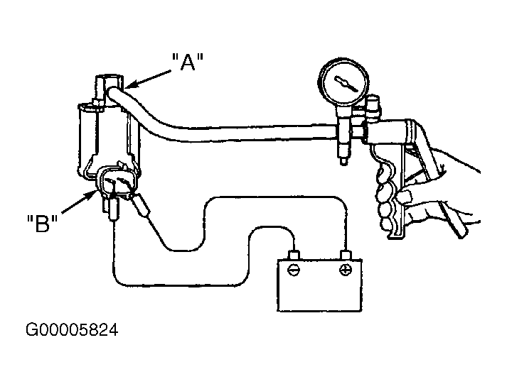 - Label and disconnect vacuum hoses from EGR solenoid. Connect hand vacuum pump to EGR solenoid port "A". See Fig 1. Apply vacuum. Vacuum should leak. Using battery voltage and ground, energize EGR solenoid. Apply vacuum. Vacuum should hold.